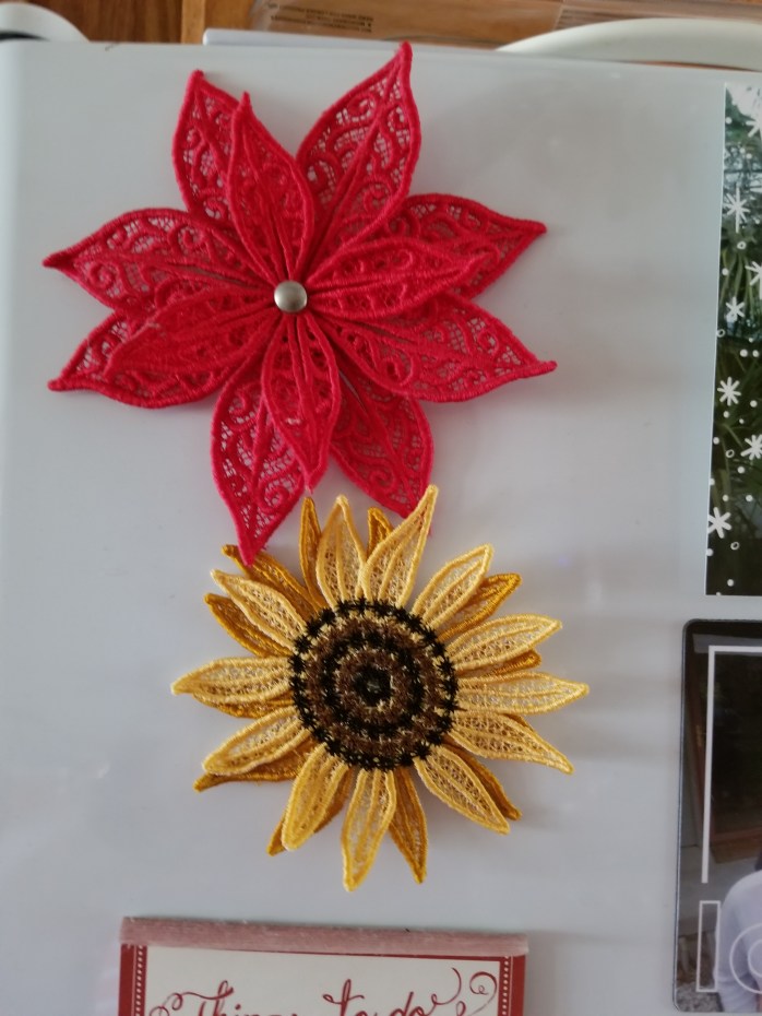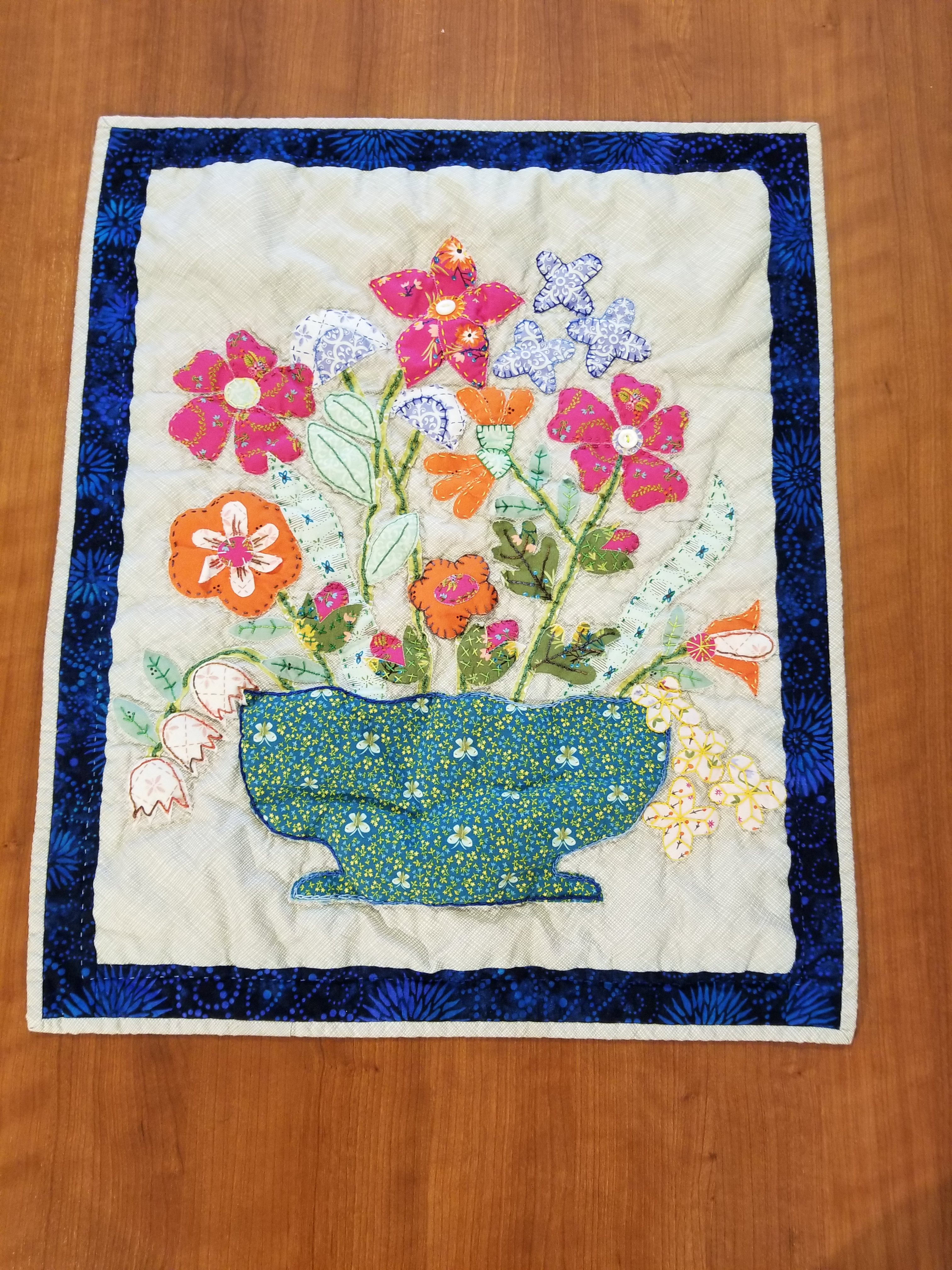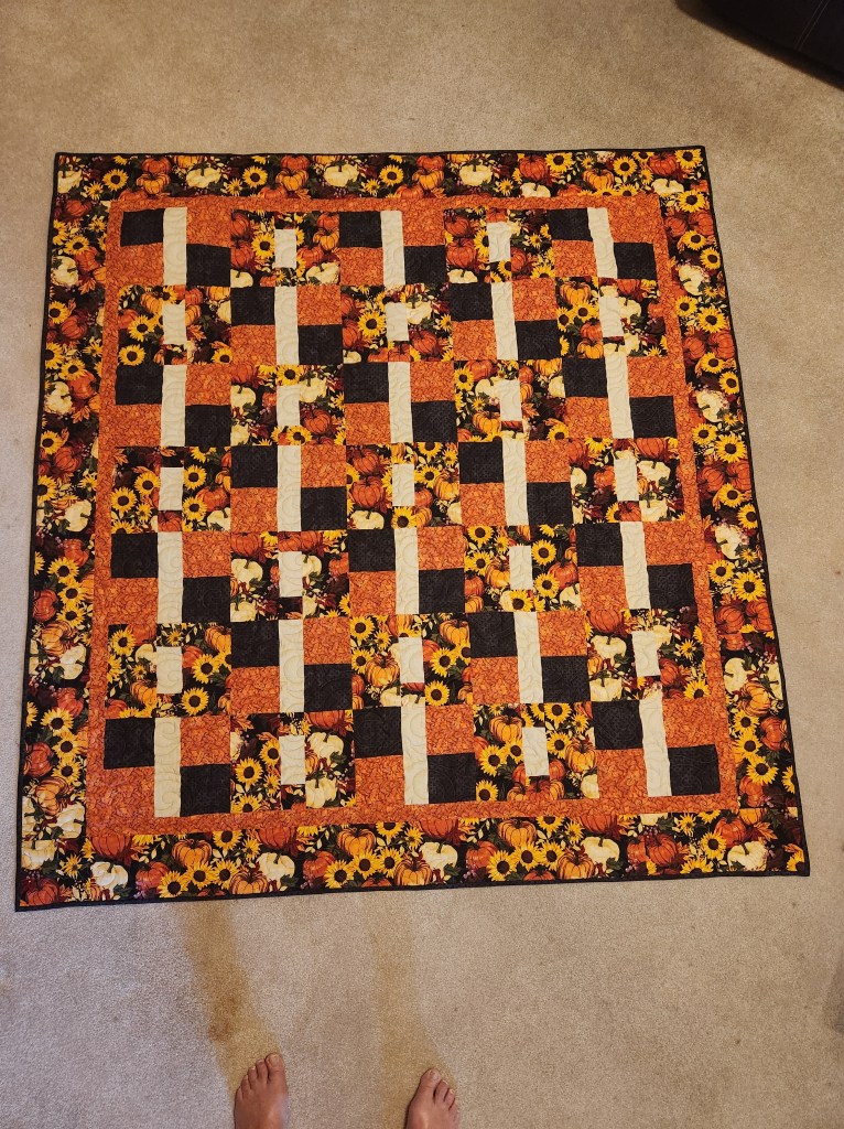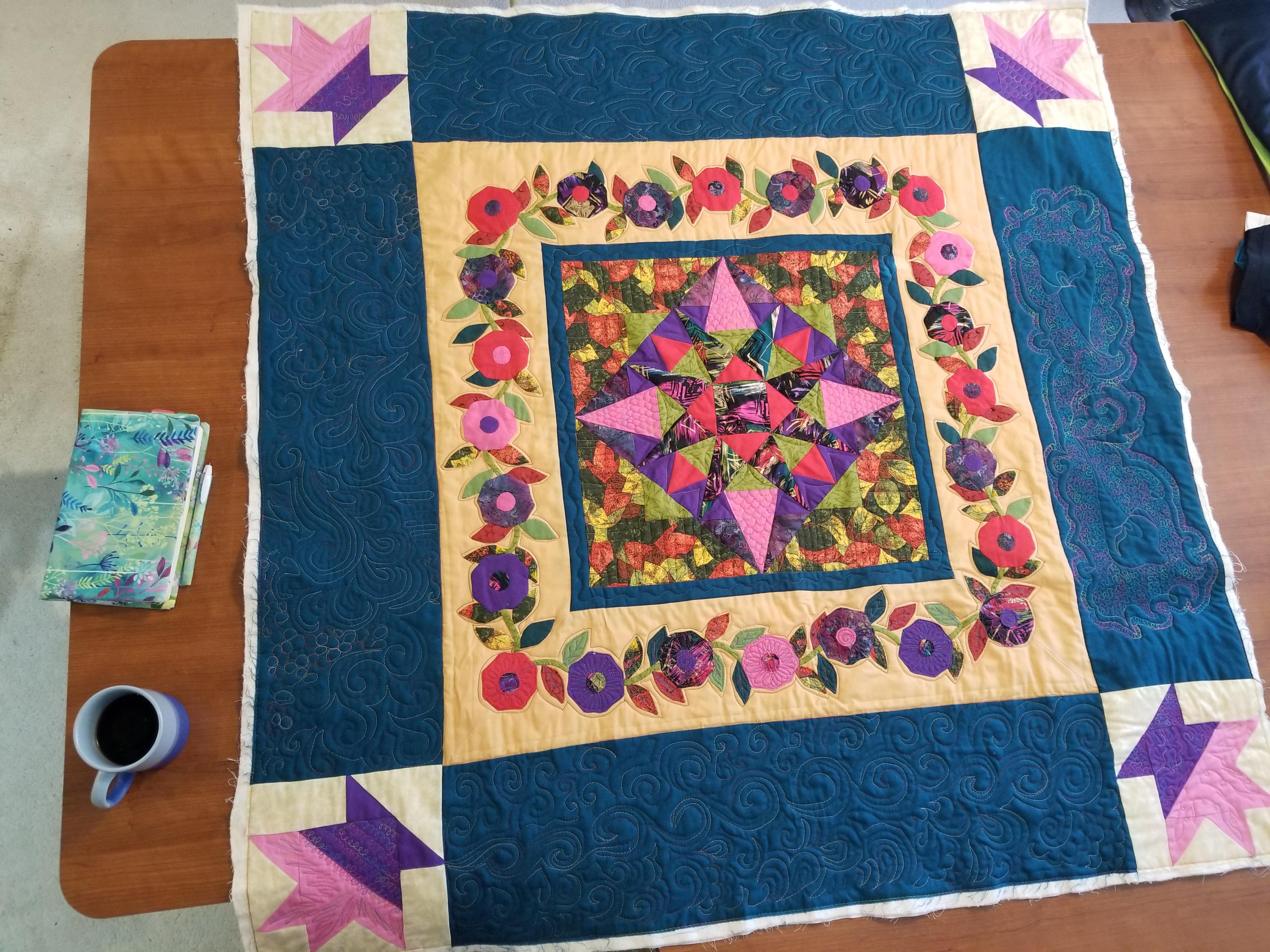 Made this mystery quilt (one set of directions at a time without knowing what the finished quilt will look like) at Columbus Star Quilters. I really love rhe sunflowers!