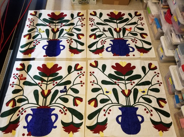 It’s a really beautiful quilt. My MIL hand stenciled the pineapples.