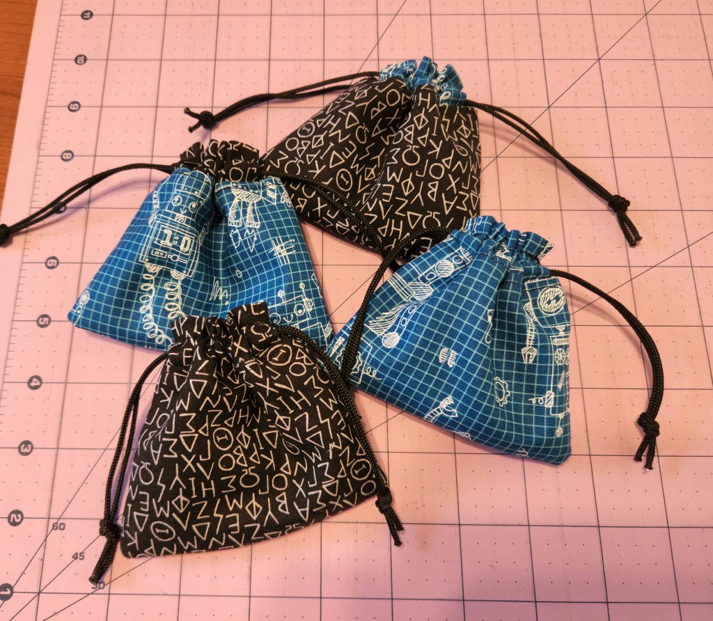 I have been working on some dice bags for friends that would like to corral all their dice. Seems game players can’t have just one set of dice, they have multiple sets. I can help organize that.