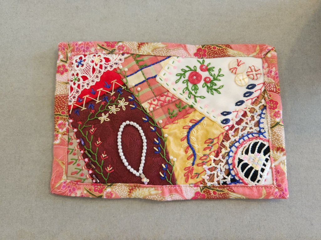 This is a crazy quilt needlebook I made the other day. The crazy quilting was popular during the Victirian Era and not a lot of people do it anymore, but I sure love it! The rich fabrics, embroidery, and all the lace, buttons, and beads – just makes my heart sing! Needless to say, a great place to store needles and pins.