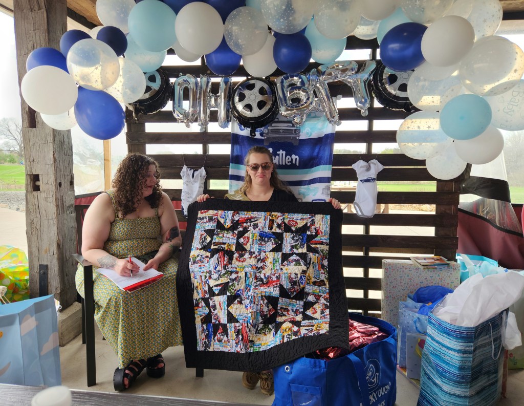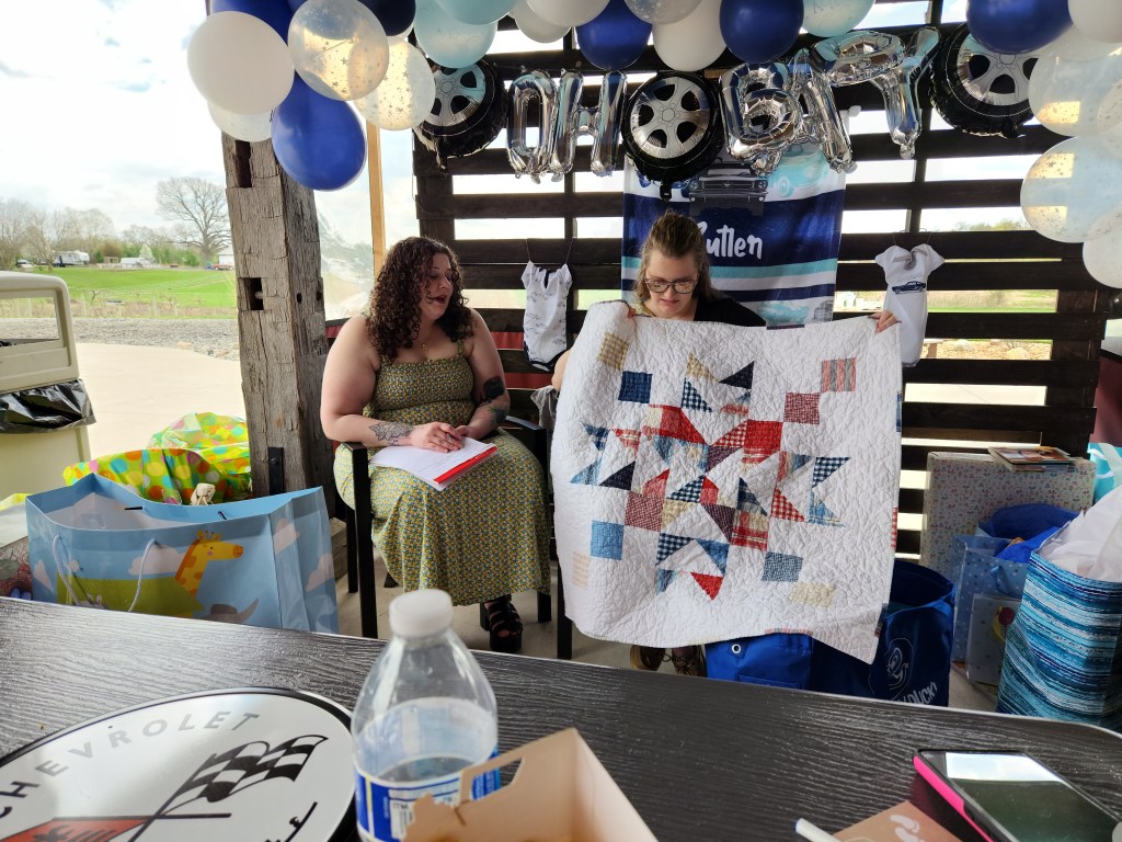 These are two baby quilts made for my niece, Alissa. Her sister, Ashley, and I made them for her baby shower. Just in time, too! She had the baby two days later.
