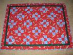 The Champions Cup Regatta held at Geist Reservior last weekend was a fund raiser for Special Olympics. A couple weekends earlier – when it was so blasted hot, I pulled this UFO (un finished object – aka unfinished quilt project) off the shelf. Open the box – surprise – it’s a Christmas quilt! And, it wasn’t even started! Ok, so I’ll sew little snowmen when it’s 100 degrees outside. Wow – look at the cute quilt! I donated this to the silent auction.
