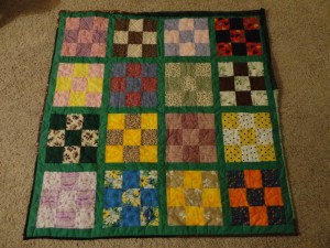 Note – Between the time I took the picture and actually made this post, I’ve finished the quilt binding. I’ll run it through the washer and dryer then it’ll be nice and soft and ready to use.