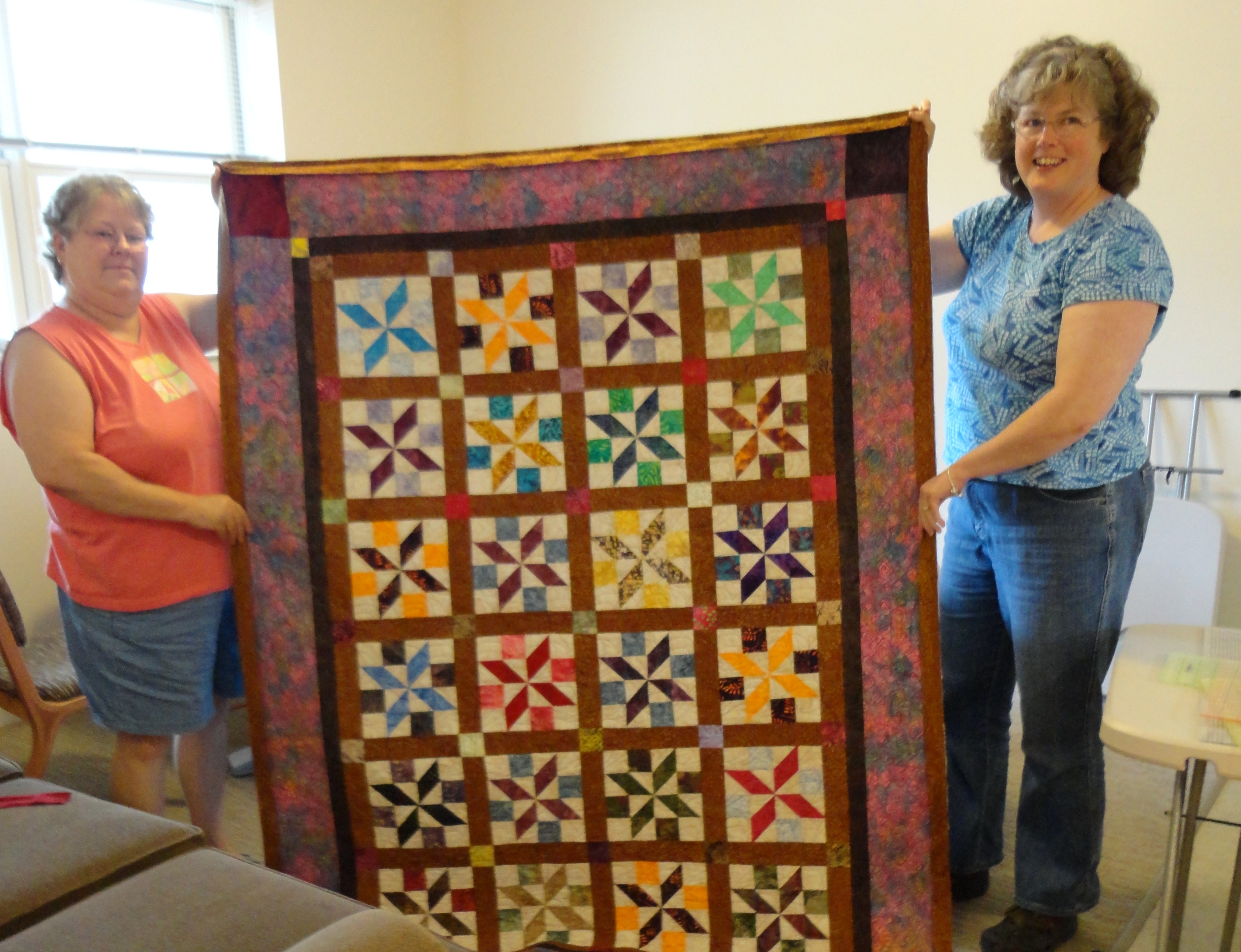 This is Janet (my sister on the left) and Shelley at the retreat. Shelley sewed on the binding and the label that weekend.