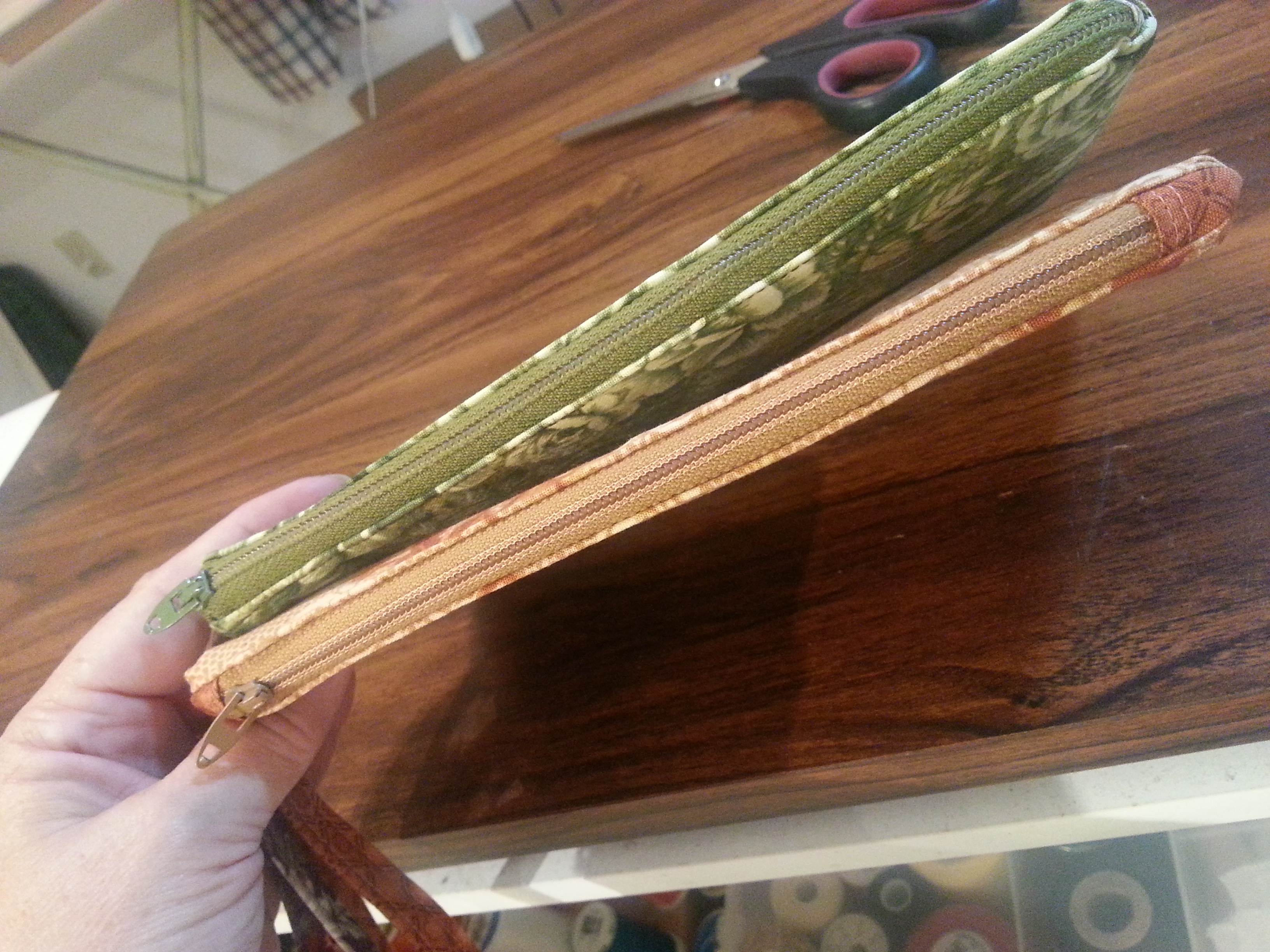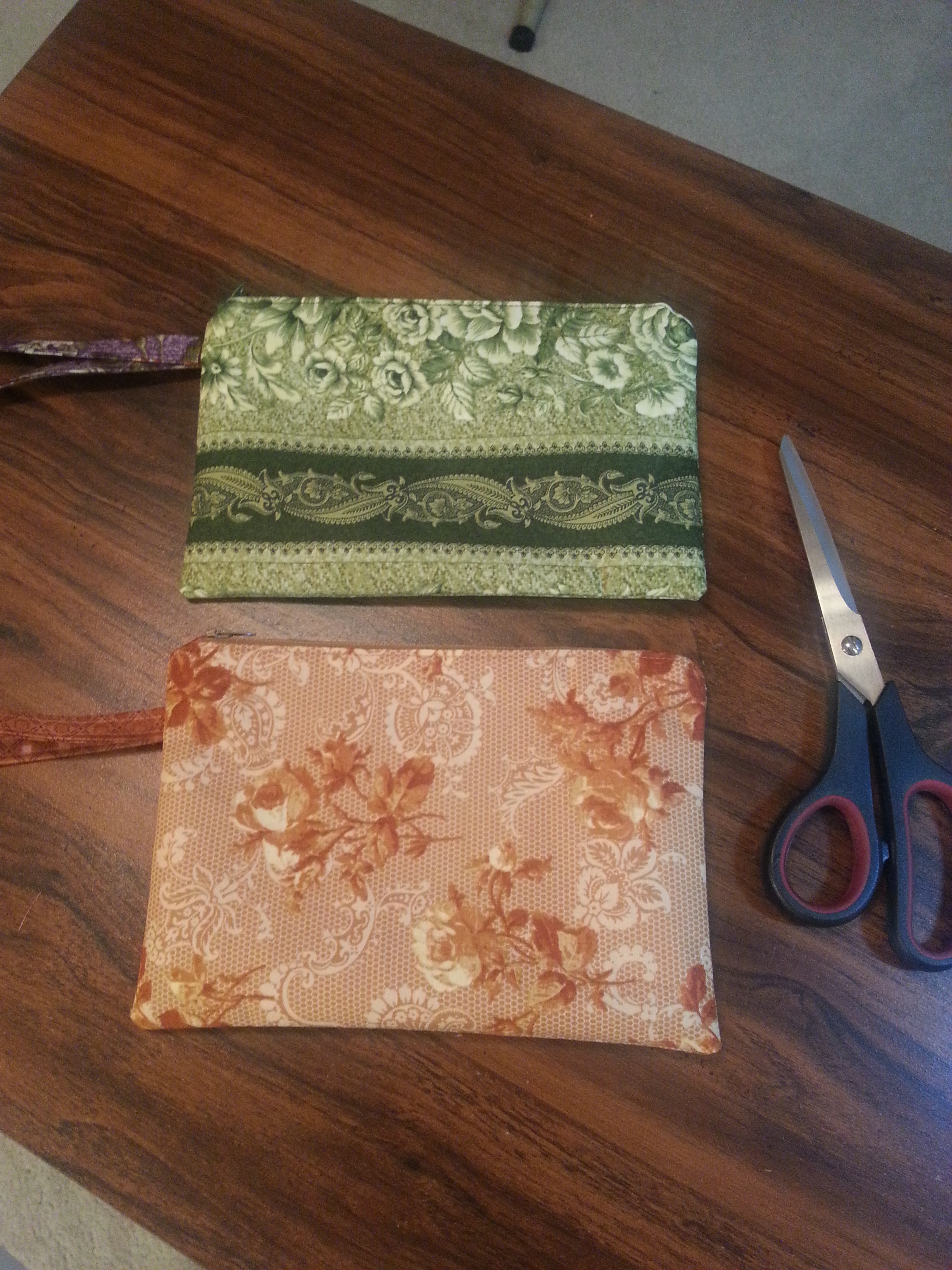 Zippered clutch bags – I made these for a couple reasons, one being I needed a bag big enough to hold my cell phone plus a few other things – like id and charge cards. I was also practicing zippers and getting them to look more professional. Did you notice the zipper pull? Nice to have a few on hand and ready to use.