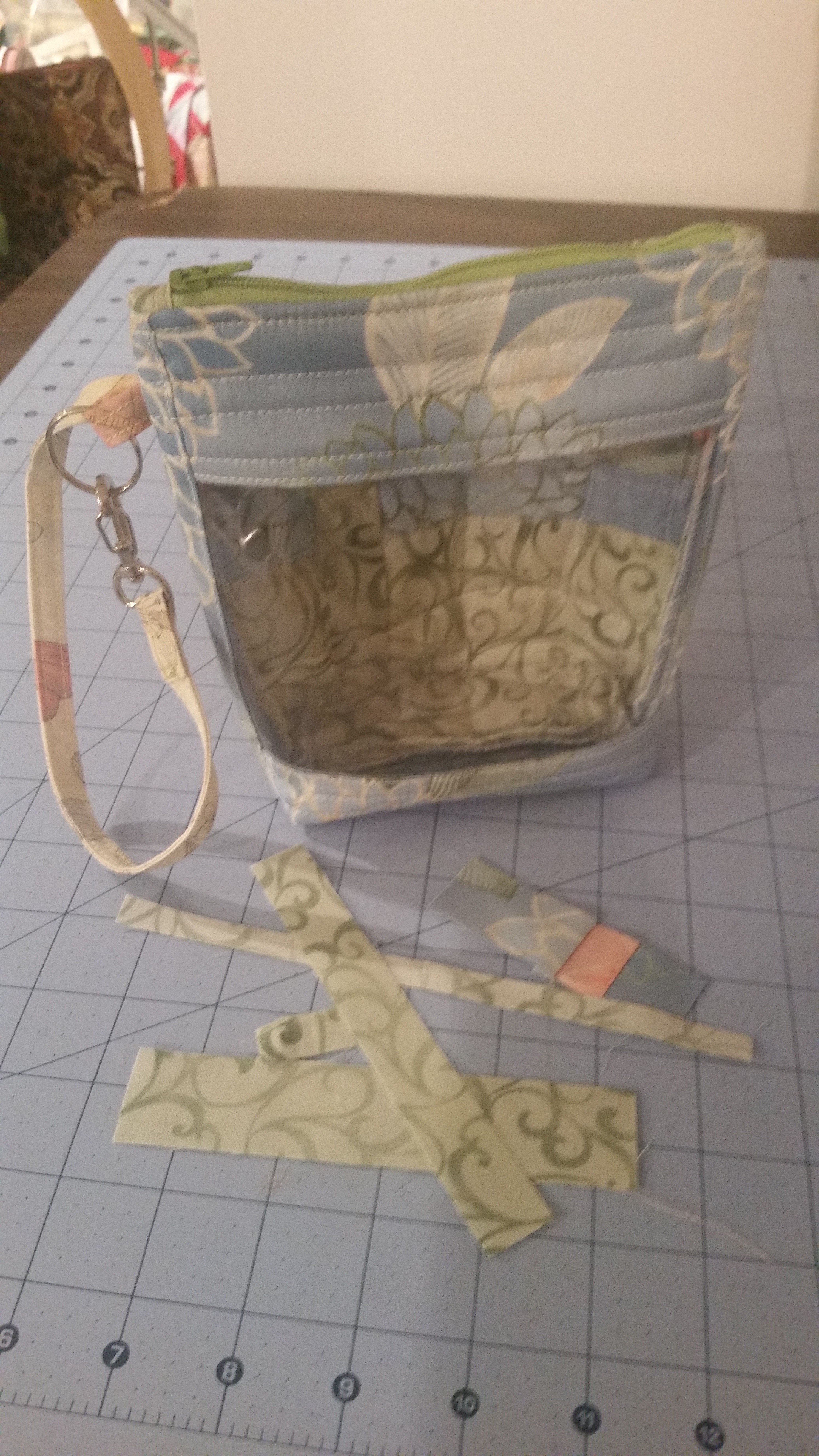 The picture above is a small zippered pouch that I made with the left over pieces of fabric. I started with a collection of six fat quarters from Keepsake Quilting. I recently read a magazine article that after you make a quilt or project, make it your goal to use up all the left overs so that you feel comfortable throwing away the scraps. Those few pieces of fabric in front of the pouch is all the fabric that was left over. If you look closely at the pouch you can tell I had to piece the back section because I didn’t have a large enough piece. So, use it up! Although I must confess, I really didn’t throw away those scraps, I put them in a bin with like size pieces to use in making rope bowls – but that’s a future project.