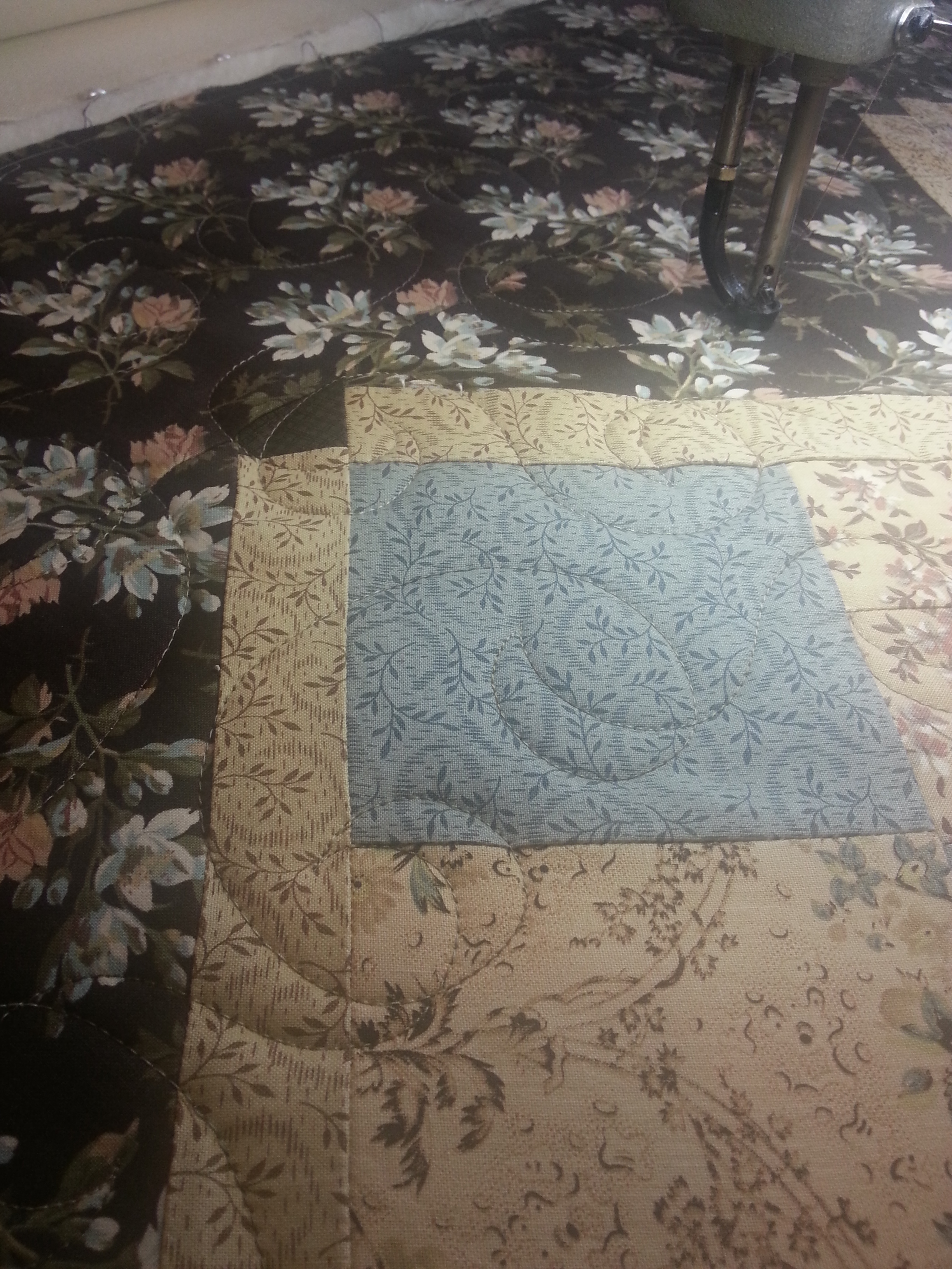 This quilt was made from civil war fabrics and quilted with a light colored variegated thread. The quilting design is a swirl design that really adds a lot of movement and doesn’t overpower the fabrics.