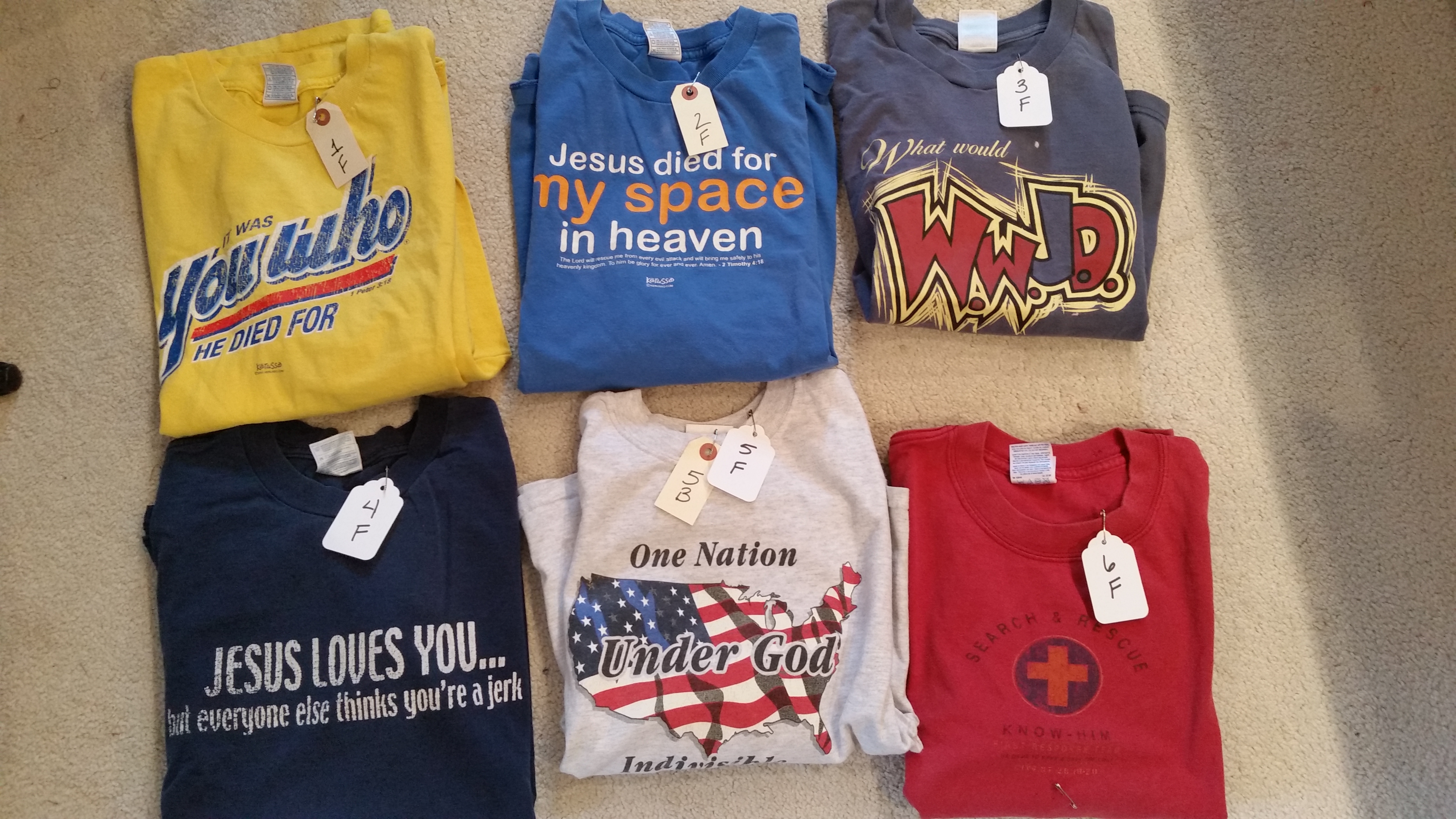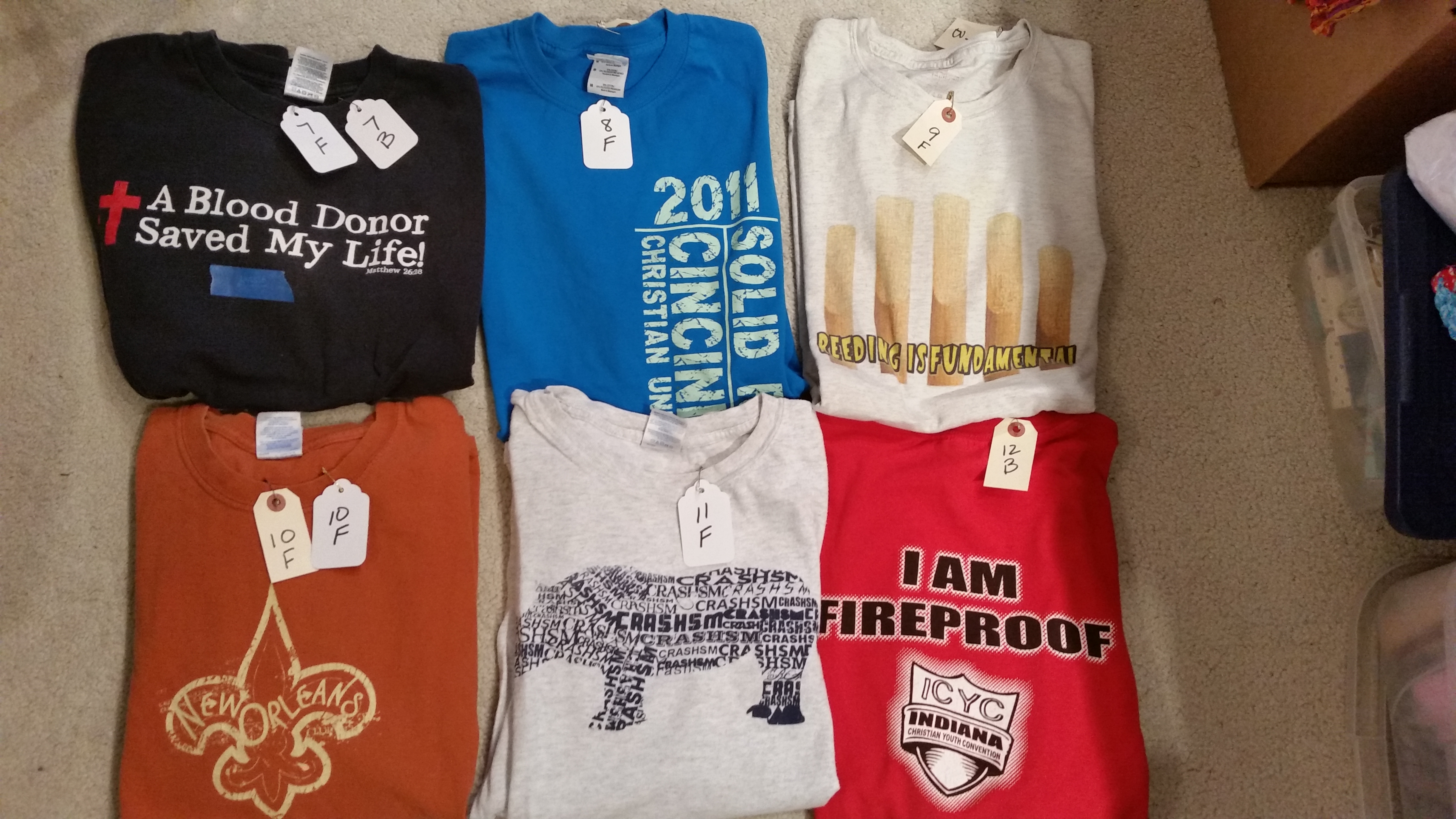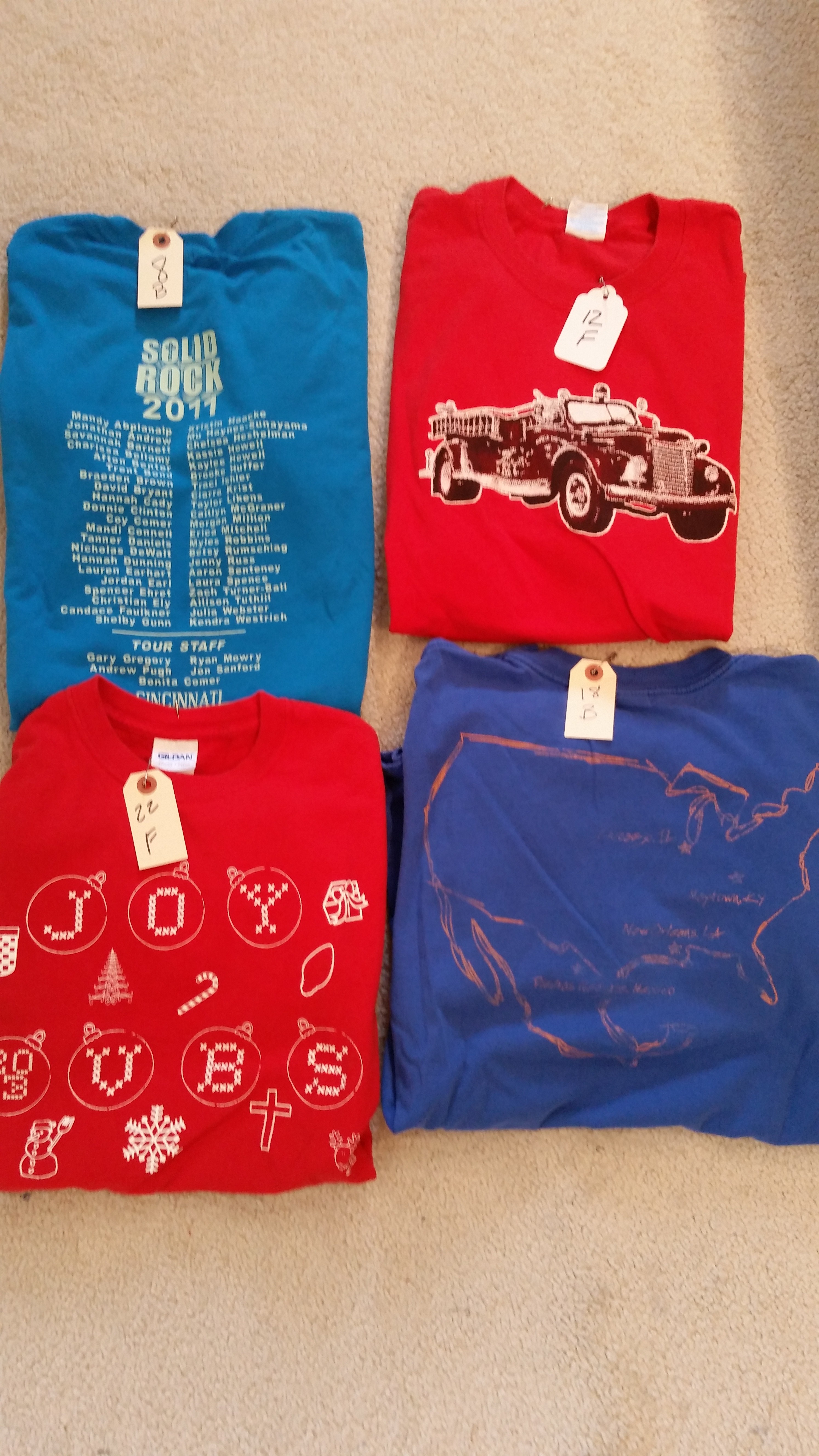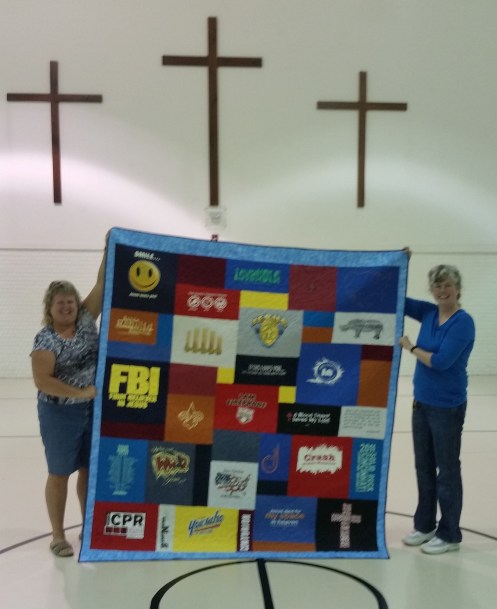 This is a t-shirt quilt I made for one of my best friends, Shelley. These were t-shirts she collected from various church groups and mission trips.