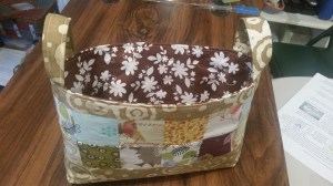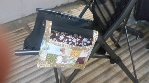 This is summer and I love to be outside in a lawn chair in the shade. One problem is there no where to put stuff – you know like a book, magazine, or a phone. So I made a small bag to fit onto one of the arms of the chair. It works perfectly! Now, I need to make a few more for family and friends.