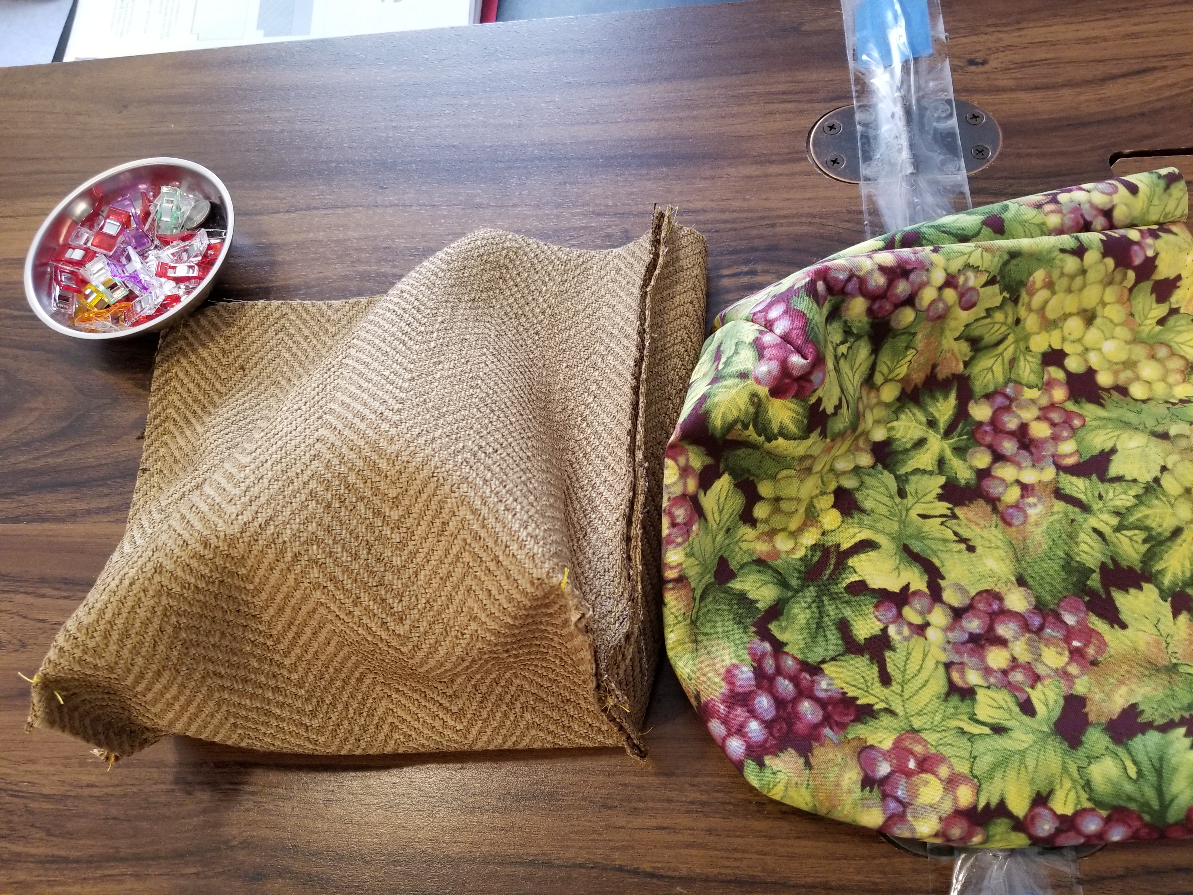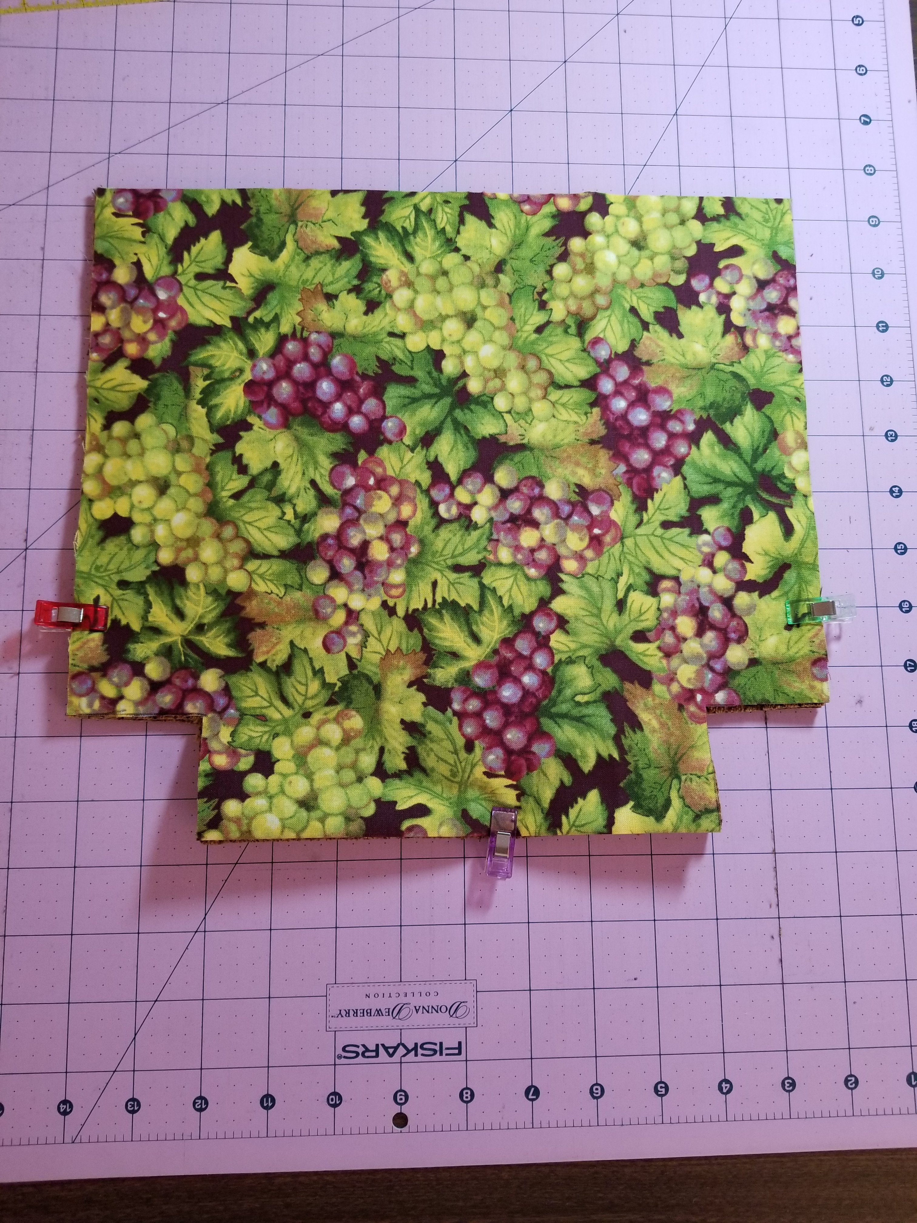 This is one of those quick and easy projects. At a quilting retreat last fall someone had a bunch of those fabric sample books. I’m sure you know what I mean. Well, there were several fabrics that were quite heavy material, like upholstery fabrics. So one of those fabric samples and a bit of cotton fabric makes this cute fold down bag. These can be made in any size and out of any fabrics. If your fabric is not stiff enough you can easily add some iron on interfacing so it will stand up by itself. These are great catch-all bags to keep on the bathroom vanity or your dresser. So cute!