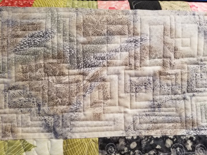 These are a couple lap quilts I quilted for my friend, Martha. I believe this started out as one jelly roll and she separated them by color. This worked out quite nicely for ‘his and her’ quilts.