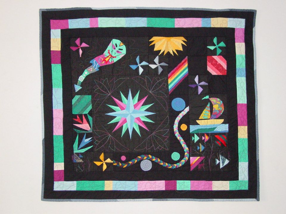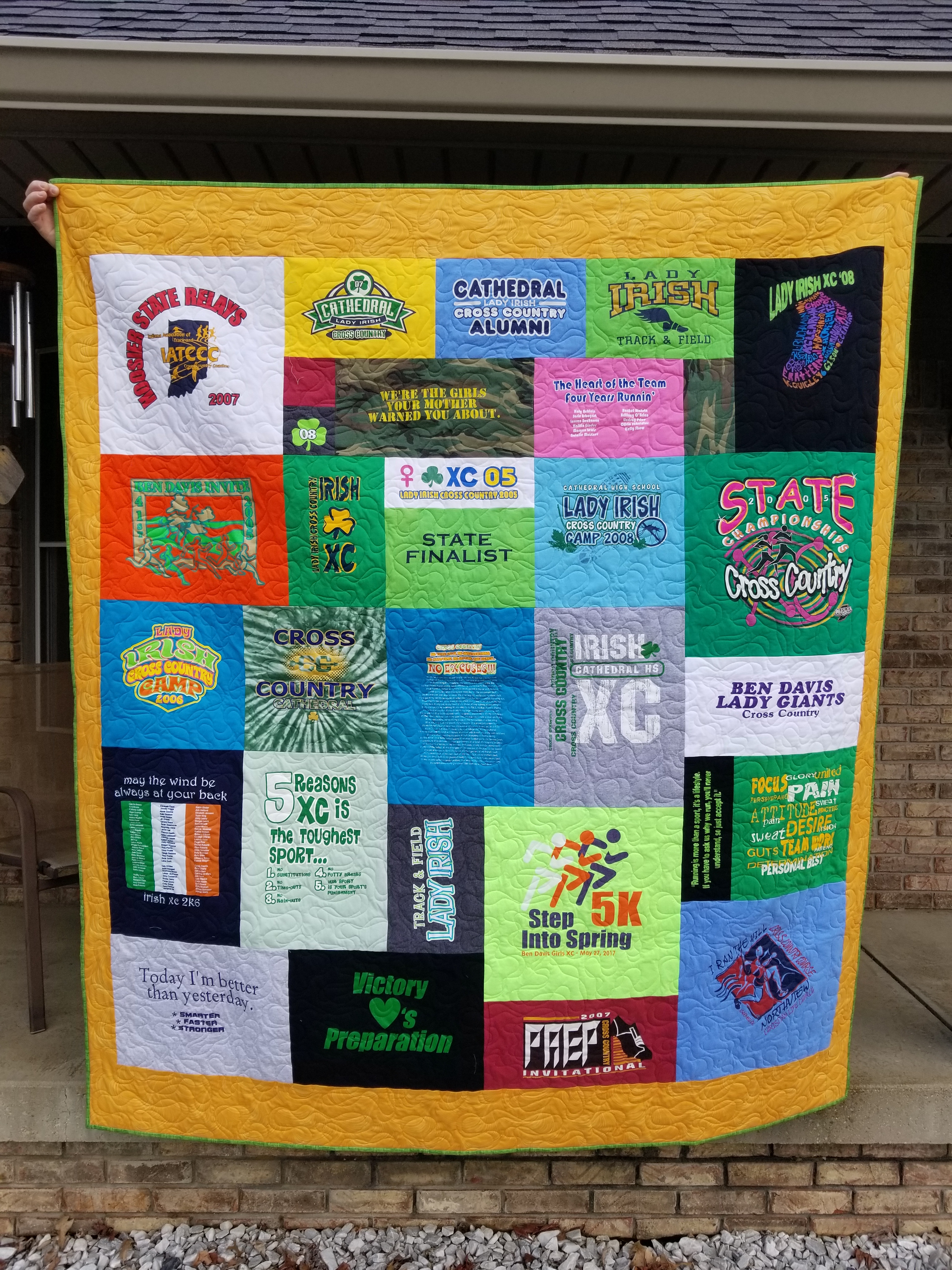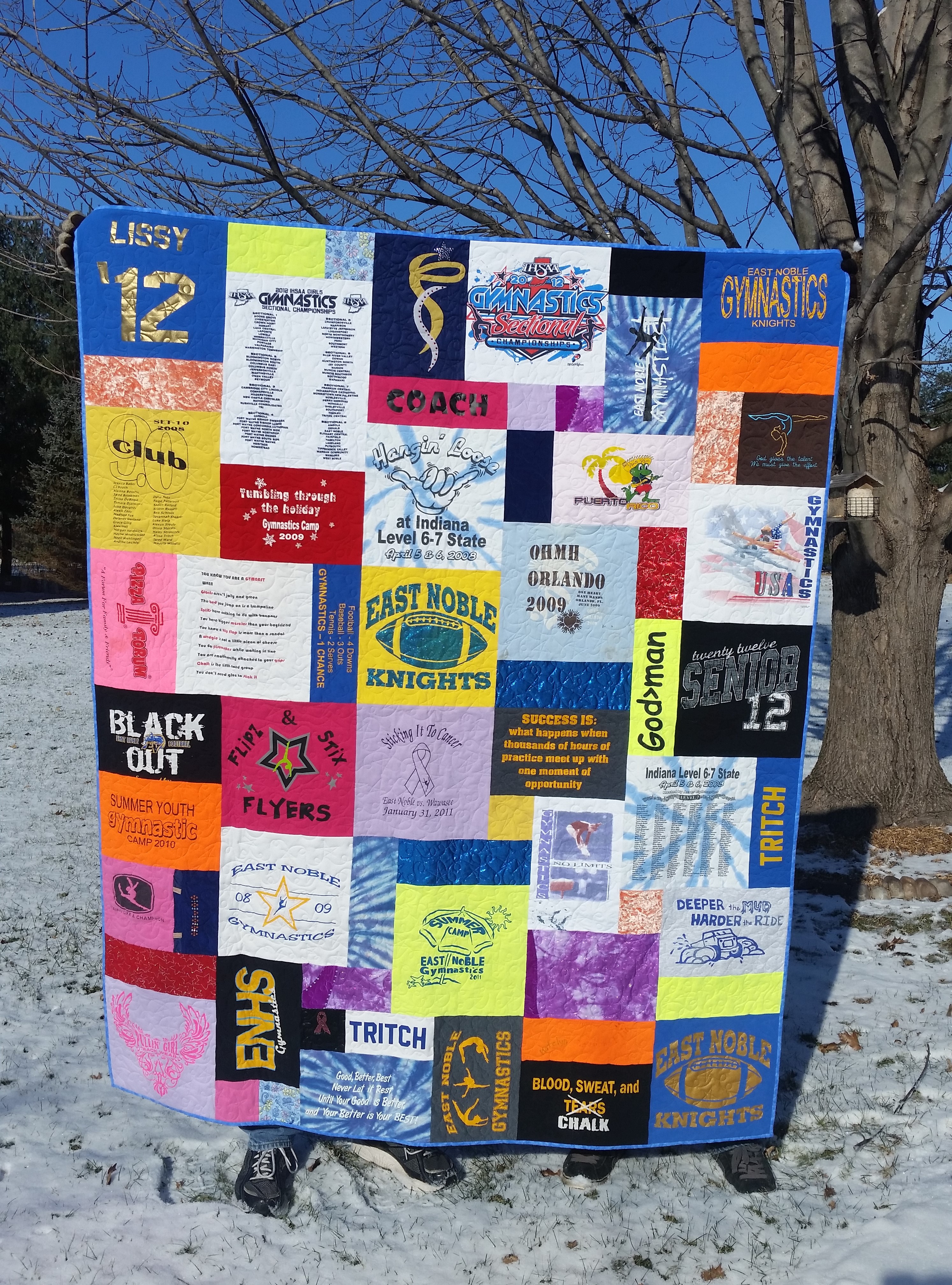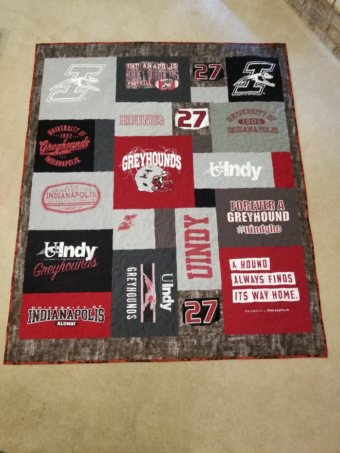 Hockey Jersey Quilt (close up) – I was able to keep the laces on some of the jerseys as well as do photo transfers (individual and team photos)