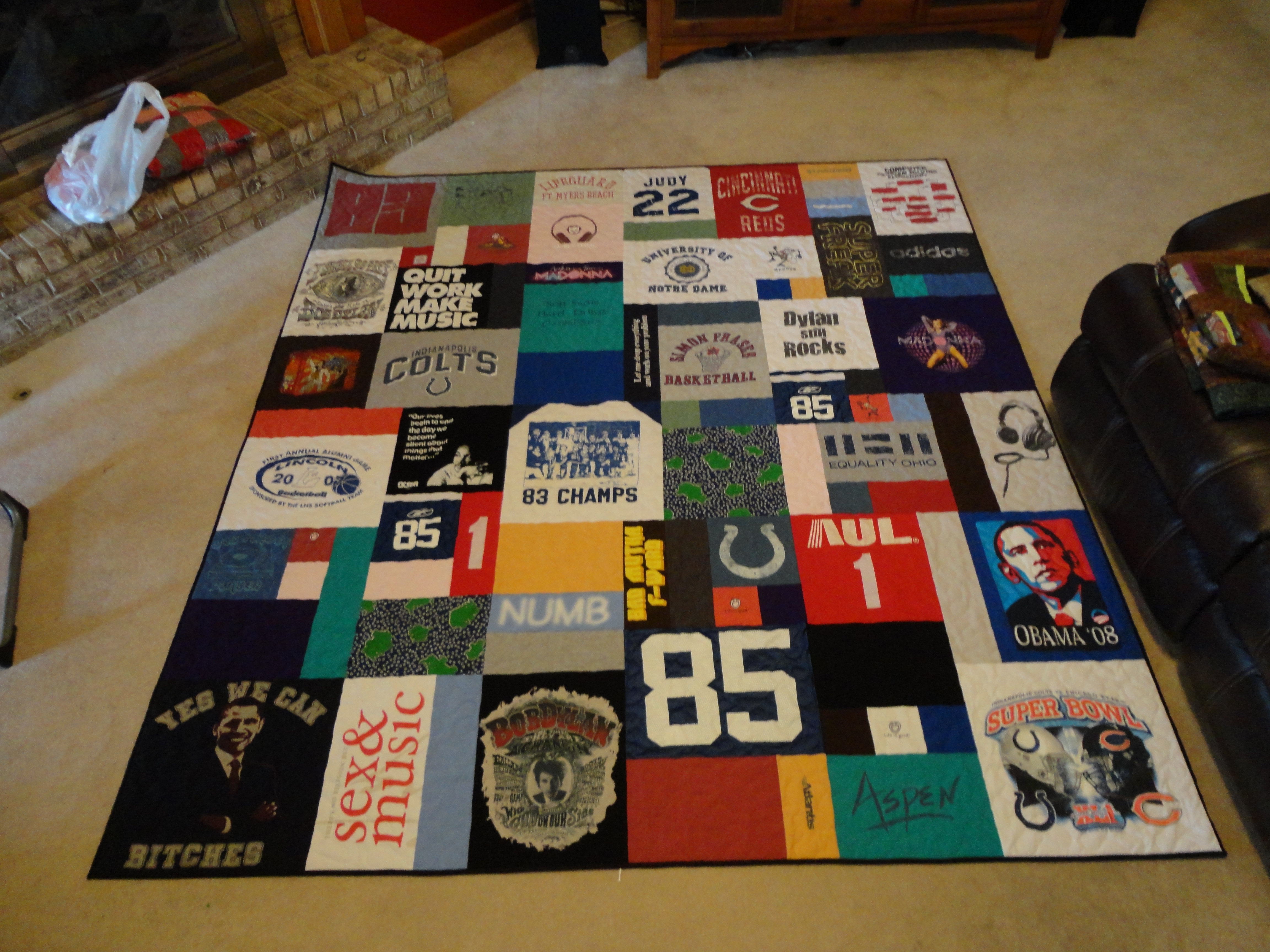 These also make great Christmas gifts, provided you can get the t-shirts or jerseys away from the recipient without them knowing. A t-shirt quilt also makes a great gift for a graduating student or college student.